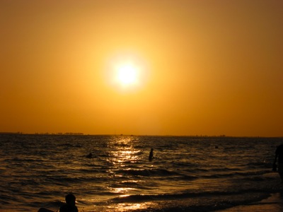 We went to the beach shortly after sunset. The gulf water is very warm, but the waves are small. We can’t wait to get in the water.