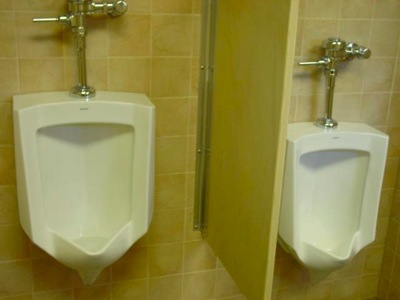 The front lip of almost every urinal sticks out some, and considering the male organ hangs out a bit as well, I just can’t fathom why a guy can’t keep all his liquid excrement inside the bowl. Are these guys afraid that they’ll catch a disease FROM A FOOT AWAY?